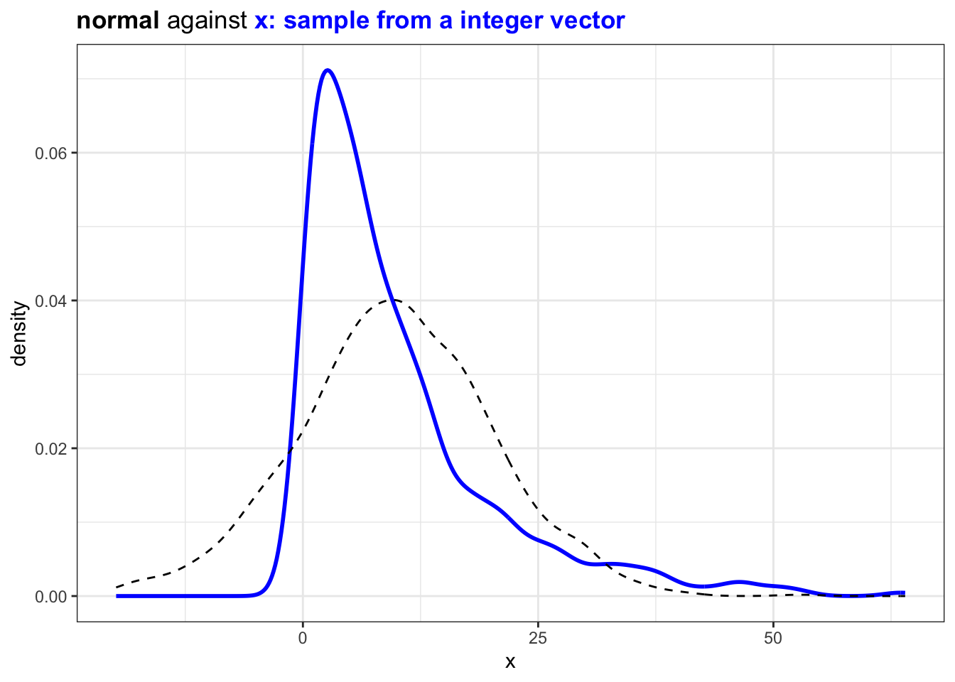 ggtitle("<b>normal</b> against <b style='color:blue'>x: sample from a integer vector</b>")